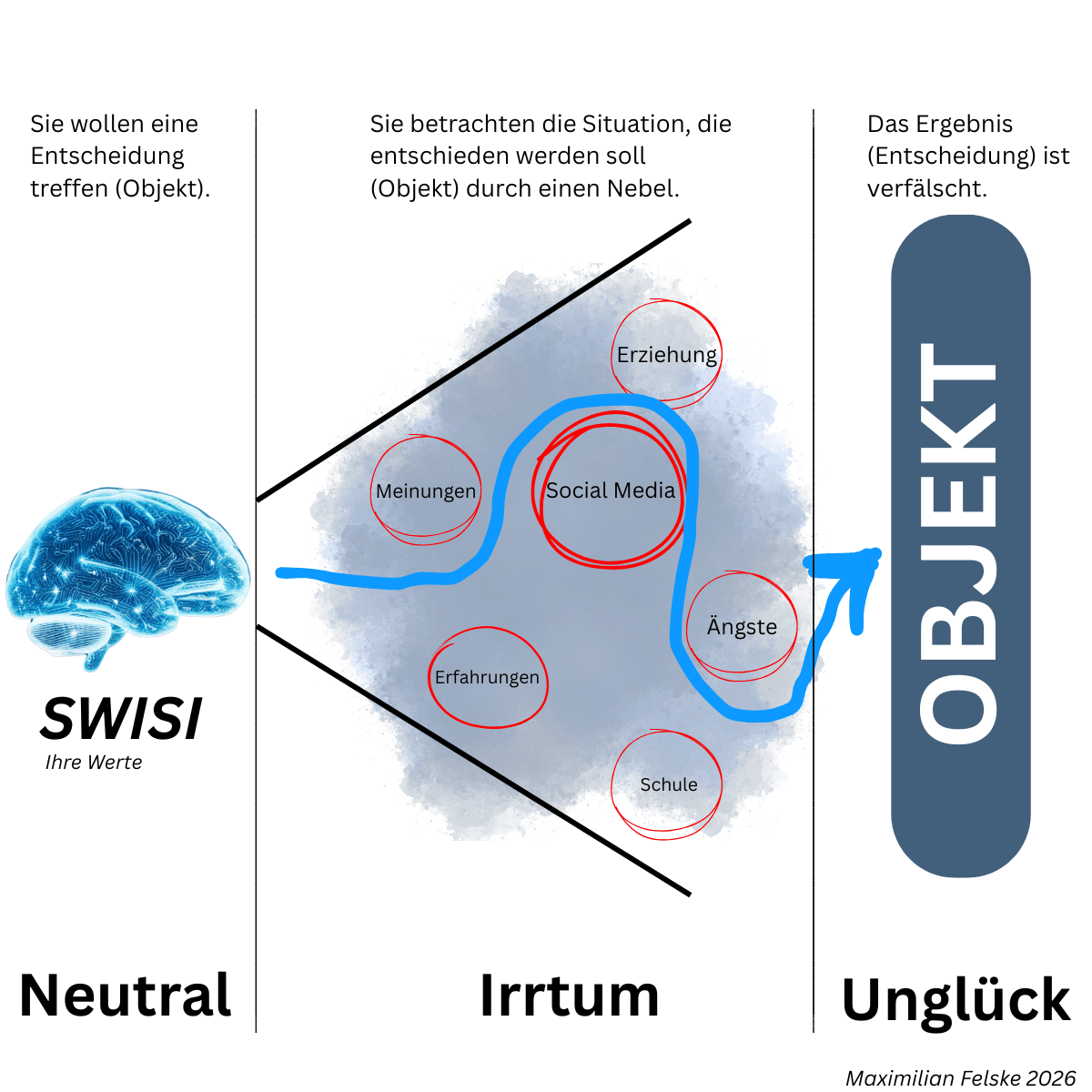 Dies aber hat sich im Laufe Ihres Lebens verändert. Über die Zeit wurden Sie mehr und mehr geprägt, haben Erfahrungen gemacht, wurden erzogen, haben sich (durch Social Media) Meinungen gebildet, haben sich Vorbilder gesucht, haben Ängste entwickelt - sprich, Sie haben Ihre Sicht zu sich selbst, also zu Ihrem SWISI komplett vernebelt. Durch eine solche vernebelte Sicht treffen Sie heute Entscheidungen und betrachten Ihr Leben. Lassen Sie uns das so sagen: Ihre vernebelte Sicht ist Ihr Ego. Und auf dem Fundament dieses erfundenen Egos treffen Sie Ihre Entscheidungen und betrachten die Welt. Das kann nicht lange gut gehen - denn das sind nicht wirklich Sie. Wundern Sie sich noch immer, dass Sie unglücklich sind und Ihr Leben ändern wollen?
